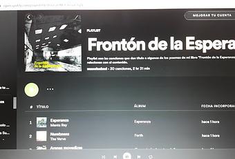 Esta es la playlist que he elaborado con las canciones que dan título a algunos de los poemas que forman parte de mi último libro, el poemario "Frontón de la Esperanza" (Turbulencias, 2020). Faltan dos que no aparecen en spotify: "Secret fires" de Gun Club -que abre el libro- y "Acción" de Modas Clandestinas. Además, se añaden algunos temas extra.