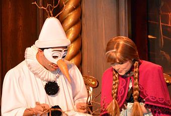 Frozen at The Royal Theatre. Es una pequeña obra de teatro MUY divertida, al estilo teatro clásico pero con las locuras de un par de narradores, Mr. Smythe and Mr. Jones. Tiene música de piano en vivo. Reirás mucho y es otra forma de entender la trama de Frozen. Es posible solicitar Fastpass para este espectáculo que suele presentarse sólo unas cuántas veces al día y la última función es como a las 4 de la tarde, así que debes planear verla temprano. No te la pierdas!