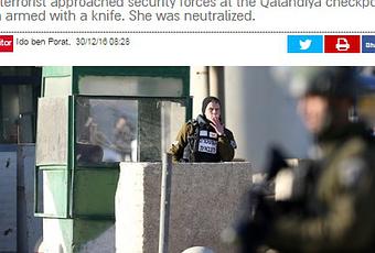 Una terrorista palestina armada con un cuchillo se aproximó a las fuerzas de seguridad ayer en el punto de control de Qalandia al norte de Jerusalén.
