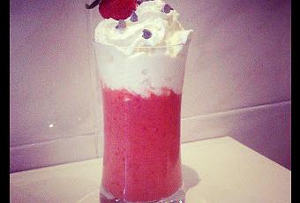 Ingredientes- Fresas frescas- Leche desnatada- Sacarina líquida o en polvoOpcional: Nata y trocitos de chocolate¿Cómo se hace?1. Quita a las fresas las hojas verdes, trocea las frutas y ponlas en un bol.2. Añade un chorrito de leche desnatada, aproximadamente la mitad de leche que de fresas.3. Espolvorea la sacarina al gusto. Si no tenéis en polvo o líquida podéis mezclar unas pastillas con un poco de leche y meterlo en el micro unos segundos.4. Bate todo y si te gusta más líquido añade leche.5. De forma opcional podéis decorarlo con nata y trocitos de chocolate como en la foto, pero esto ya hace que engorde mucho más...