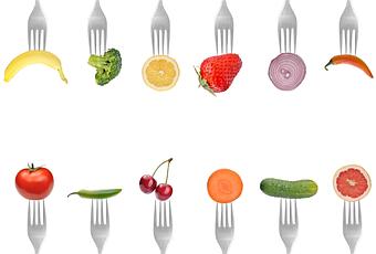 Imagen Frutas y verduras pinchadas en tenedor de Shutterstock