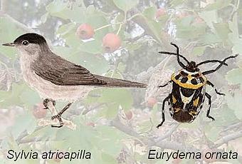 Así, por una curiosa casualidad de la evolución, la presencia en la Región Mediterránea de arbustos de fruto carnoso, herederos de antiguos linajes tropicales, supone una amenaza para los insectos aposemáticos, un riesgo que se materializa en el acto de predación por parte de las pequeñas aves frugívoras. Sin embargo, es la savia de estas mismas plantas la que puede alimentar a estos insectos, como Eurydema, lo cual convierte a los arbustos en máximos benefactores para los pájaros: no sólo les dan refugio, y frutos, sino también calorías en forma de insectos... aunque éstos sean venenosos, lo que al parecer no importa mucho a nuestra ahora casi ubicua curruca capirotada.