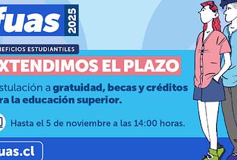 Estimados estudiantes, padres y apoderados de los 4° medios de nuestro país. Se informa sobre extensión de plazo para el llenado del FUAS por parte del Ministerio de Educación, con el fin de optar a los beneficios del estado chileno.
