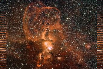 Esta imagen de la nebulosa NGC 3582, que fue tomada con el instrumento Wide Field Imager del telescopio MPG/ESO de 2,2 metros, en el Observatorio La Silla de ESO en Chile, muestra gigantescos arcos de gas asombrosamente similares a las protuberancias solares. Se piensa que estos arcos son eyectados por estrellas moribundas, sin embargo también hay nuevas estrellas que nacen en esta maternidad estelar. Estas estrellas jóvenes y energéticas emiten una intensa radiación ultravioleta que hace brillar el gas dentro de la nebulosa, dando la impresión de ser fuegos artificiales.