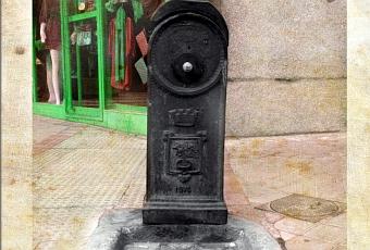 La fuente pública de la foto está en una esquina del barrio de Salamanca de Madrid. Es de 1876, es decir del periodo en que el barrio se construía integrado en el proyecto de Ensanche de Carlos María de Castro. La fuente de hierro y el vaso de granito se han conservado, y se ve como se ha procurado integrar la fuente en el nuevo solado de la acera sin estridencias innecesarias.