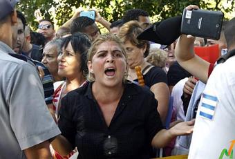 Lázara Bárbara Sardiñas Recarde y María La Caridad Hernández Gavilán son miembros del Movimiento Hermanas de Blanco se encuentran presentes y apoyando la protesta.