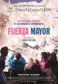 Con vocación de "cine de autor", cadencia lenta, gusto por las imágenes fijas y tendencia a descolocar al espectador con encuadres que dejan sucesos fuera de su visión, el director sueco Ruben Ostlund propone pasar unos días de vacaciones con un matrimonio y sus hijos en un lujoso hotel en los Alpes. Lo que inicialmente son sólo unos días en familia y un argumento costumbrista de lo más trivial de pronto da un vuelco con un suceso que provoca consecuencias inesperadas y asistimos a un juego de dimes y diretes, tiras y aflojas en público y en privado y un cataclismo íntimo de todos los personajes. No se queda Ostlund sólo en la crisis y su resolución, sino que utilizando un nuevo suceso consigue relativizar todo lo que ha mostrado previamente demostrando que, en mayor o menor medida, todos estamos a merced de nuestras miserias.