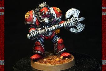 Estos Adeptus Mechanicus eran de metal de una sola pieza completamente llenas de detalles. Ambas miniaturas están armadas con Hachas de Energía. Como veis el esquema de pintura es bastante simple básicamente rojo, acero y dorado. El detalle de las lentes de los cascos en verde y unas bolsas que llevan en los costados de color marrón. La pintura de las peanas también fue simple. Sobre el arena apliqué tinta sepia únicamente.