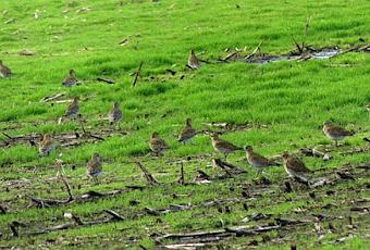 Sin embargo a los dos días en una zona cercana localicé otro grupo de esta especie, a los que acompañaban cerca de 100 avefrías, o sirigüeyas como las llamamos en mi concejo.