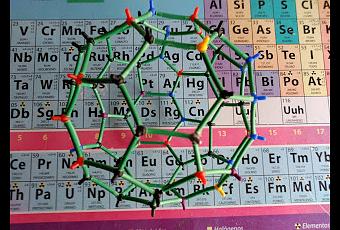 Hoy os voy a hablar sobre el fullereno, una molécula muy curiosa, además de por su forma por todo lo que ha implicado su descubrimiento. La imagen que muestro del fullereno la he construido yo misma.