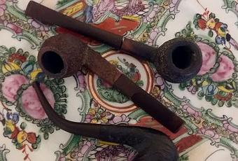 No sabemos por qué, en una época de su vida, al padre de uno de nosotras, fumador empedernido de cigarrillos, le dio por cambiar las cajetillas por las pipas... Lo cierto es que, para sus dos hijas, que odiaban el olor a tabaco, el que provenía de estos artilugios no les era tan desagradable al olfato. La moda duró poco porque pronto volvió a su Winston "de cartón" de toda la vida. Finalmente, al cabo de unos años, dejó de fumar definitivamente, habida cuenta que, desgraciadamente, fue él quien diagnosticó a su hermano el cáncer de pulmón que le hizo perecer. Tan dolorosa pérdida le hizo reconsiderar su adicción, aunque su profesión de galeno no había impedido que consumiera tabaco a espuertas... Hoy hemos encontrado guardadas esas pipas y no hemos podido resistirnos a recordar al querido padre que ya se fue. Nos ha costado la misma vida encontrar fotos decorativas con estas cachimbas, lo cual nos alegra, teniendo en cuenta el daño que producen en la salud de los consumidores.