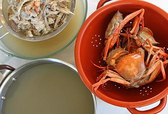 Siempre que voy al mercado busco pescados de roca o cualquier otro que sea económico para estos menesteres; esta vez había cangrejos a 4 euros el kg y cabezas de rape pequeñas a idem de lo mismo, compré medio kilo de cada, tuve que tener mucho cuidado con los cangrejos por que se querían ir solos de paseo (se me estaban escapando) :) pero yo fui mas lista jejeje...