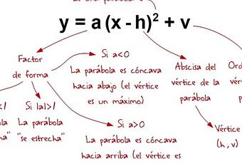 Resumiendo todo lo visto, a partir de la ecuación desarrollada o polinómica de una función cuadrática, podemos extraer la siguiente información:
