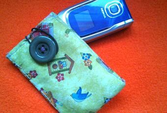 Buenas tardes!!!! de nuevo otra funda para otro tipo de móvil, mas pequeño, pues funda adptada a este móvil. En tonos verdes y el botón marroncete