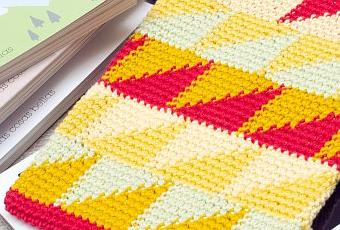 Con el tapestry crochet se trabaja formando dibujos en varios colores sin que queden hebras sueltas por detrás de la labor. Simplemente el color que no se usa se lleva por el interior de los puntos que se van trabajando, y así es muy fácil hacer dibujos complejos. El resultado es un tejido súper resistente, perfecto para bolsos, monederos, fundas para dispositivos electrónicos… Es prácticamente reversible y al terminar no tienes que rematar hebras sueltas.