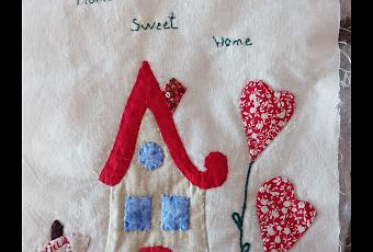 Aqui es cuando terminé la casita justo antes del montaje, la casita la vi en Pinterest y luego fui poniendo detalles a mi antojo, estas flores con forma de corazón se las vi a Isa del Blog "Sabela patchwork", aunque a ella le quedan mucho mas bonitas pero gracias por la idea, me encantó.