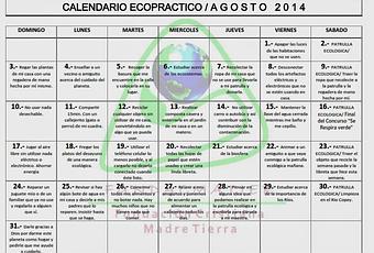 Este mes de agosto la Fundación Cristiana Madre Tierra (Fundacmatier) lanza el Calendario Ecopráctico, para enseñar hábitos y actividades responsables con el medio ambiente a los miembros de sus 10 Patrullas Ecológicas.Se trata de 31 actividades que van a estar realizando los niñ@s y adolescentes que integran cada patrulla para que además de conocer las diferentes prácticas amigables con el medio ambiente que contribuyen a la conservación del planeta, las ejecuten y las hagan realidad.