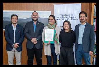 De izquierda a derecha: Juan Carlos Berrú, presidente ejecutivo Grupo Futuro ; José Antonio Dávalos, viceministro de Ambiente, Agua y Transición Ecológica en calidad de Ministro Subrogante; Ana Sevilla, presidente Directorio Fundación Futuro; Carolina Proaño-Castro, directora Ejecutiva Fundación Futuro; Felipe Andrade, coordinador de Gestión de Carbono y Biodiversidad