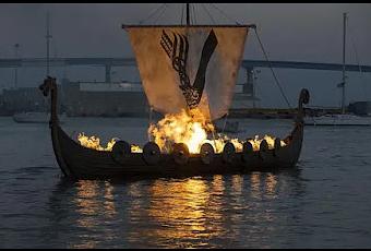 En el siglo X, un escritor árabe, Ahmad ibn Fadlan, realizó una descripción de un funeral de un jefe escandinavo, probablemente sueco, que viajaba en la ruta comercial del Volga. El relato es una fuente única acerca de las ceremonias que tenían lugar en los funerales vikingos de un jefe o un rey.El jefe muerto fue colocado en una tumba temporal, la cual fue cubierta durante diez días hasta que fueron cosidas para el difunto ropas nuevas. Una de sus esclavas se ofreció voluntaria para irse con él a la otra vida, por lo que fue custodiada día y noche y se le dio gran cantidad de bebida para intoxicarla mientras cantaba alegremente. Cuando llegó la hora de la cremación, pusieron el barco del jefe en tierra, le depositaron en una plataforma de madera y le hicieron una cama en el barco. Mientras, una mujer anciana conocida como el «ángel de la muerte» puso cojines en la cama. Ella era la responsable del ritual.