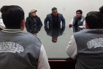 SLP.- Esta mañana representantes de la Federación Universitaria Potosina, de la Universidad Autónoma de San Luis Potosí, entregaron un posicionamiento acerca del incremento a la tárifa del transporte público.