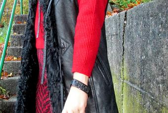Desde luego nadie puede dudar que lo mas calentito para el frío es el punto y las pieles, ¿verdad?.Por las mañanas salgo de casa muy tempranito así que no queda otra mas que abrigarse bién. Hoy opté por esa combinación de la que os hablo, lana y pelo. Y por una combinación de colores clásica que nunca falla, rojo y negro. Los pantalones no son un modelo muy habitual en mi, pero éste en particular me gusta mucho. Y respecto al chaleco tiene muchos años, se ha convertido en una pieza vintage a la que le tengo mucho cariño. En principio empezó siendo un abrigo pero he decidido quitarle las mangas y convertirlo en un chaleco.