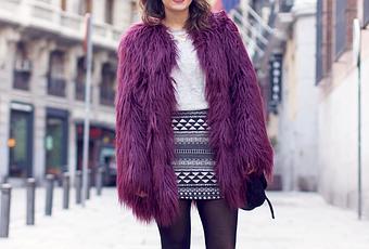 Start and finish the week wearing this berry fur coat, its my favorite partner to combat the low temperatures ;). The oder day I showed you pair it with oversize jeans in a casual outfit (you can see it here), and today in one more elegant with aztec skirt, gray shirt and black heels, what look do you prefer?
