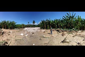 La noche de este martes los intensos aguaceros caídos en las lomas de panzo, causaron la crecida del arroyo, el cual además de bloquear la vía arrasó con una parte de las plantaciones de plátanos y guineos a la altura de Cerro al Medio.