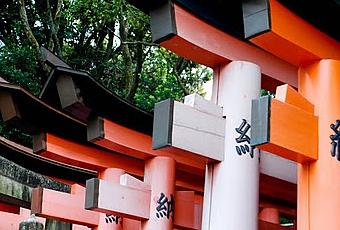 Este santuario shintoista y dedicado al espíritu de Inari. Lo mas destacado de este templo son la infinidad de toori (鳥居) o arcos tradicionales japoneses que te encuentras en tu camino por la colina donde se encuentra, parecen túneles hechos de tooris.