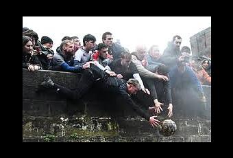 El fútbol de carnaval o fútbol medieval es un juego tradicional británico aparecido en la Edad Media, que, en el siglo XIX, dio origen a una serie de deportes modernos que comparten en menor o mayor medida el término fútbol. Descendiente directo del soule, se practicó en las islas británicas y España entre los siglos XI y XVIII. De la misma forma que en el soule, cada bando tiene su lugar de marca, en este caso las porterías son ruedas de molino incrustadas en el centro de unos muros de piedra. Estas están situadas a la orilla del río, separadas por una distancia de tres millas. Los tantos se consiguen golpeando con la pelota la piedra de molino. El balón es pesado y voluminoso lo cual dificulta su manejo. Por eso la lucha se reduce a agarrarlo fuertemente y con el apoyo de los compañeros conducirlo, y esto es lo curioso del juego en esta comarca, a su propia rueda de molino. Y la gente se disfrazaba para la ocasión.