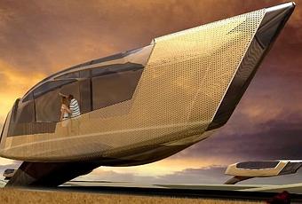 10 Design está basando sus esperanzas en la arquitectura cinética y las innovaciones tecnológicas para convertir este sueño futurista en una realidad. La casa a prueba de tornados se une en una gran caverna subterránea, como una flor que emerge de la tierra. Una vaina cilíndrica con un espacio habitable sobre una torre hidráulica que emerge desde el subsuelo. En la caverna, otras áreas domésticas, servicios públicos y almacenamiento permanecen enterrados, mientras que la propia casa se disfruta al aire libre, puntos de vista, la brisa y la luz del día.
