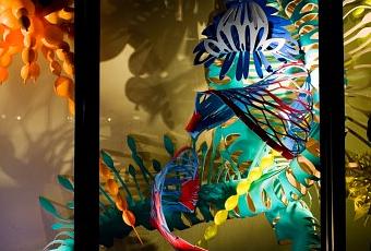 Este escaparate fue diseñado en el 2007 para las tiendas de Harvey Nichols (Knightsbridge en Londres), donde unas enormes flores futuristas de llamativos colores, protagonizaban un total de 40m distribuidos en 7 escaparates.
