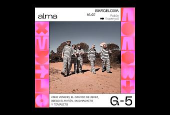 Dentro del Alma podremos ver en julio a G-5, un super grupo de lo más especial, en e Poble Espanyol.Este G-5 es un super grupo donde encontramos a varios músicos de primer nivel, podremos verles en el Poble Espanyol. Muchos no conocerán este proyecto, la referencia de G-5 es un grupo, en realidad es un supergrupo formado por Kiko Veneno, El Canijo de Jerez y Diego Ratón, de Los Delinqüentes, Muchachito y Tomasito. Tocarán en el Alma festival en julio presentando sus canciones en el Poble Espanyol.