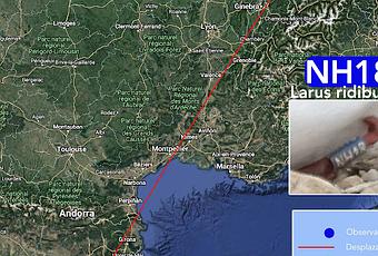 Anillada en enero de 2021 en Barcelona (nacida unos dos años antes). estuvo de abril-junio de 2023 en Suiza. Observada en el Parc Fluvial Besòs, tramo de Sant Adrià de Besòs en Agosto-2023