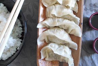 Esta receta ha sido un descubrimiento para mí, además de un reto en toda regla.Las Gyozas son unas empanadillas de origen chino, pero que se han popularizado gracias a la cocina japonesa. Se pueden cocinar de seis formas diferentes. Como las mías las hice primero a la plancha sólo por un lado y después se terminaron de hacer tapadas con el vapor del agua que les añadí, se llaman Yaki Gyoza. Hace tiempo que les tenía echado el ojo, y la que por fin me animó a hacerlas fue mi hija. Ella las toma de vez en cuando en un Restaurante Koreano. Y la involucré hasta el punto que es la primera receta que hacemos juntas desde que tengo el blog.