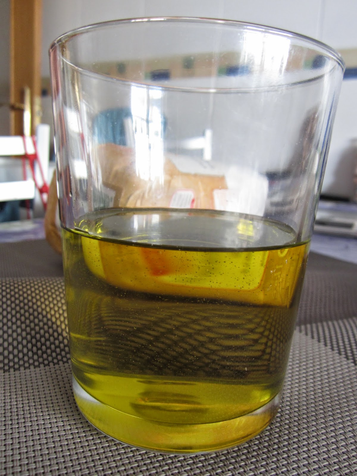 Apartamos el aceite del fuego para evitar accidentes. Dejamos templar un poco y añadimos el agua y un buen pellizco de sal.