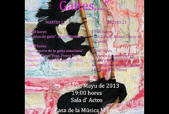 Martes 21 de mayo, 19:00 horas. Casa de la Música de Mieres: "Gaiteros, gaiteres y gaites".Con semejante título arrancan dos jornadas dedicadas a estas gaitas, y en la tarde de este penúltimo martes del mes disfrutamos en el espacio de dos horas sendas conferencias y presentaciones de libros, uno ya conocido por mí y otro totalmente nuevo, aunque lleve cinco meses publicado, que en breve ocuparán mis estanterías de temas asturianos.