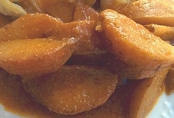 NÚMERO DE PERSONAS2TIEMPO DE PREPARACIÓN5 min+ 50 de cocciónMATERIAL NECESARIOHorno, cuchillo, fuente con tapa apta para horno, cuchara, vasoINGREDIENTES1 vaso de vino blanco3 patatas grandesSalAceite de olivaPimentónCebolla en polvoAjo en polvoPREPARACIÓN1. Lavamos bien las patatas.2. Sin necesidad de pelarlas, las cortamos a gajos.3. Depositamos las patatas troceadas en la fuente y vertemos el vaso de vino, el pimentón, una buena cucharada de cebolla en polvo y otra de ajo, rociamos con aceite y removemos bien.4. Horneamos a 200°C unos 50 minutos.5. A mitad cocción, las removemos un poco para que se impregnen bien todas las patatas con la salsa.OBSERVACIONESPodemos añadir un poco de pimienta.