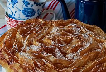 - Conforme vayamos "pintando" con mantequilla las hojas de pasta filo las vamos doblando como un abanico o un acordeón.