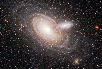 Espectacular imagen de dos Galaxias superpuestas tomadas por el telescopio espacial Hubble, se trata del objeto 2MASX J00482185-2507365, un par galaxias que se encuentran en el fondo de galaxias que hay junto a la galaxia del Escultor (también llamada de la moneda de plata), todas ellas en la constelación del Escultor.