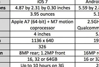 Galaxy S5 Vs iPhone 5S: Tabla Comparativa