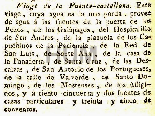 La Fuente Castellana-visible en la fotografía que acompaña el texto al que nos referimos-, fue levantada a petición de Fernando VII en la zona donde hoy se sitúa la Glorieta de Emilio Castelar, y en el lugar donde estuvo ubicada la primitiva Fuente Castellana.