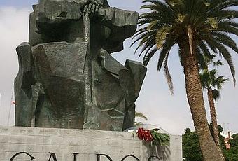 Estatua de Galdós en Las Palmas de G.C. (Pablo Serrano, 1969)Si preguntan ustedes a cualquier canario sobre quien en es su paisano más universal no tengan duda alguna de cual será su respuesta: el escritor Benito Pérez Galdós. Para conmemorar su nacimiento, del que acaban de cumplirse 173 años, voy a ir subiendo al blog a lo largo de los próximos meses su copiosa obra narrativa, que comencé hace unos días con el primero de sus Episodios Nacionales, colección de cuarenta y seis novelas históricas escritas entre 1872 y 1912 que tratan acontecimientos de la historia de España desde 1805 hasta 1880, aproximadamente. Sus argumentos insertan vivencias de personajes ficticios en los acontecimientos históricos de la España del XIX como, por ejemplo, la guerra de la Independencia Española, un periodo que Galdós, aún niño, conoció a través de las narraciones de su padre, que la vivió.