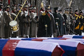 Los restos de soldados franceses y rusos que murieron durante la retirada de Napoleón de Moscú en 1812 fueron enterrados con honores militares en un raro momento de unidad entre los dos países.