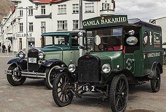 Por ejemplo, en Ísafjörður, ademas de los que se pueden ver por la calle o carretera (Un cadillac de los 50, un pontiac de los 70...) suele haber aparcados en el centro y en frente de la Gamla Bakaríið (La vieja panadería y pastelería del pueblo, toda una institución desde el siglo XIX. Les hare una entrada mas adelante), a modo de exposición callejera y durante todo el verano dos coches: Un Ford T de 1929, que fue el primer vehiculo de motor de reparto que tuvo la panadería, y un Ford A de 1930 (De los típicos de gangster). Funcionales y perfectamente cuidados (Y respetados por la gente...hasta por los turistas), con sus piezas originales.