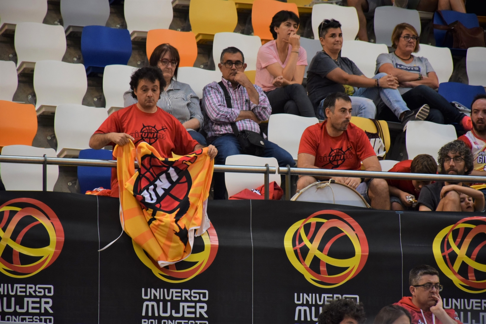 Pasión de amiga. Anna Gómez, del Valencia Basket, celebra el triple de Esther Montenegro, del CB Clarinos. Foto: Toni Delgado / Cronómetro de Récords.