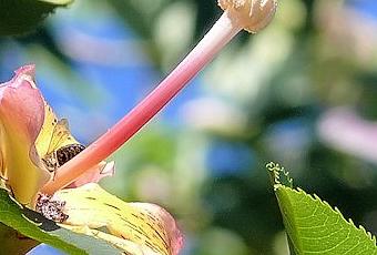 Las flores de Chorisia speciosa son muy visitadas por insectos polinizadores. Casilda, Santa Fe, Febrero de 2008. Lumix FZ 50, Zoom Leica 35 – 420 mm.