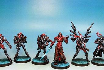 Ángel Giraldez ha colgado en su pagina de FB una galería muy completa de las nuevas figuras del sectorial Sygmaa para el Ejercito Combinado de Infinity The Game,que salen a la venta el mes que viene.Según indica en su pagina de FB las ha pintado usando Game Air(Gama de pintura diseñada para aerografos) y Model Color de Acrylicos Vallejo y la verdad es que le han quedado de vicio,como todo lo que suele hacer.A mi me gusta esa combinación de negro-gris-rojo carne despellejada que tienen.Les da un aspecto siniestro,maligno y totalmente inhumano.A mi los Tohaa es una facción que me parece curiosa.Algunas cosas que tienen me interesan y me gustan y otras la verdad es que no me llaman.Por ejemplo el armamento lo veo muy corto y de unas formas poco apropiadas.En estos Tohaa del "lado Oscuro" la verdad es que pasa algo por el estilo,pero compensa la forma de los cuerpos.Ademas de Legado Umbra(Alias "el Sith",como mucho ya le llaman) me gustan mucho los droides de combate,aunque les hubiera puesto otras armas diferentes.