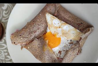 NOTA: Otra opción es cocinar el huevo a la plancha por separado y ponerlo encima del queso ya derretido con el jamón en el último momento justo antes de cerrar la galette.