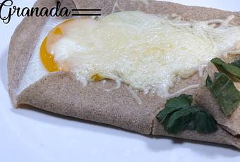 Se pueden reservar así hasta el momento de ir a comer.Antes de servir se pone el crepé de nuevo en la crepera y se le añade el jamón y el queso, se dobla los extremos para evitar que se salga el relleno y se añade el huevo.
