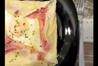 La galette es una especie de crêpe típico de Bretaña (Francia), generalmente salado, que se rellena de infinidad de ingredientes. El más popular es éste, relleno de jamón, queso y huevo.